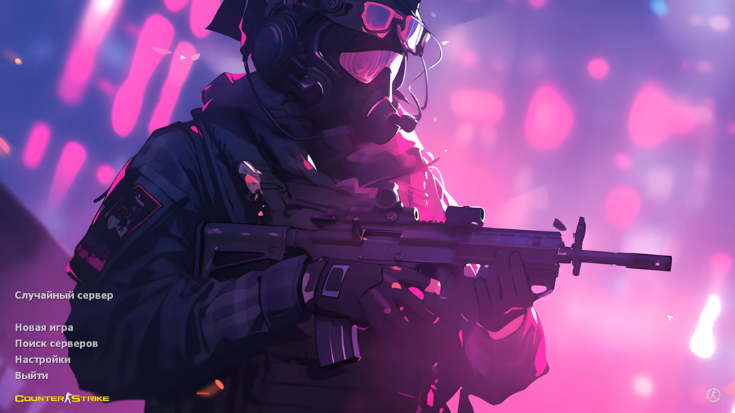 - Main menu background with an animated-style counter-terrorist in pink tones