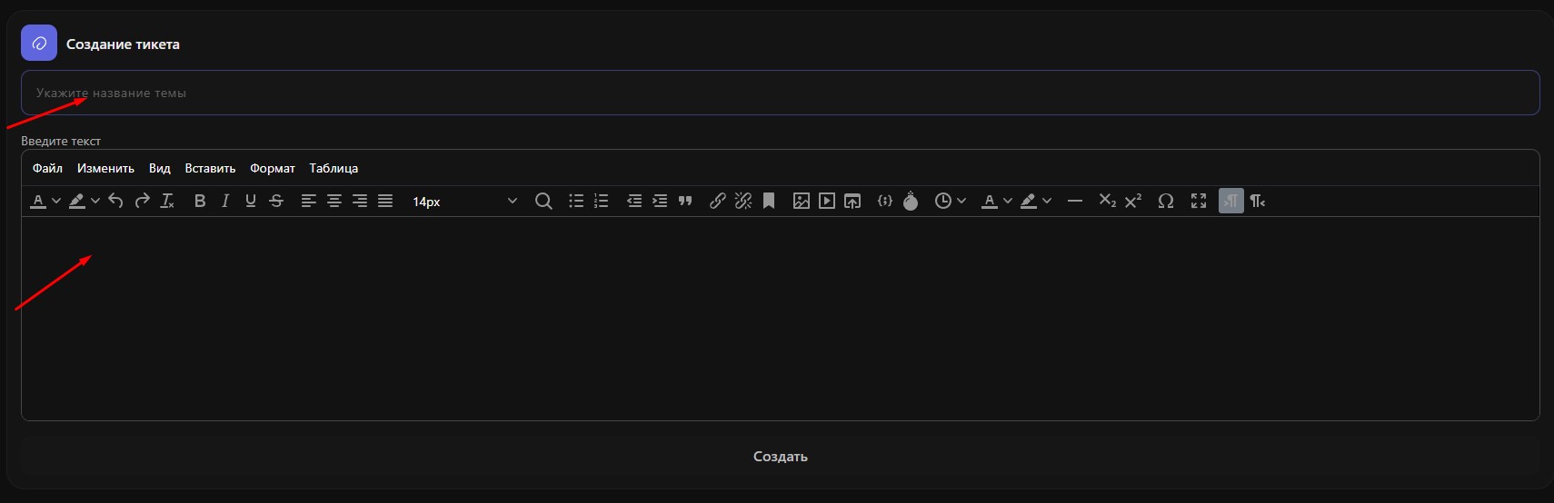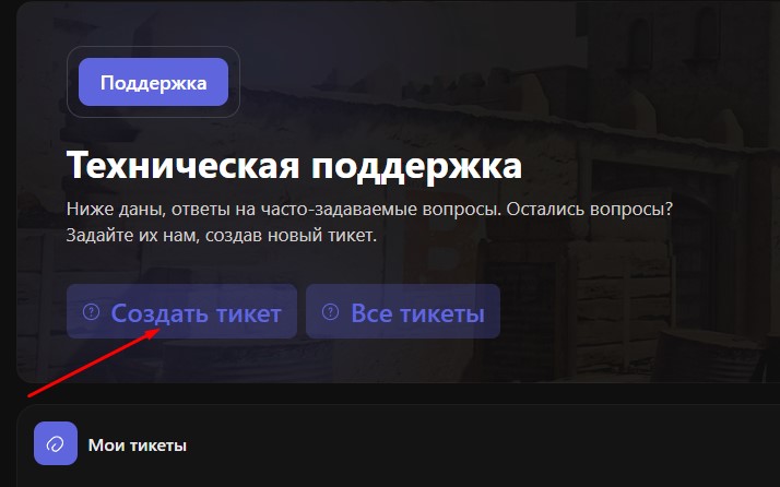 Шаг 2. Нажать на кнопку «Создать тикет»