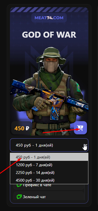 Выбираем нужную привилегию,срок и добавляем в корзину - Кнопка "NEW" значит что услуга новая