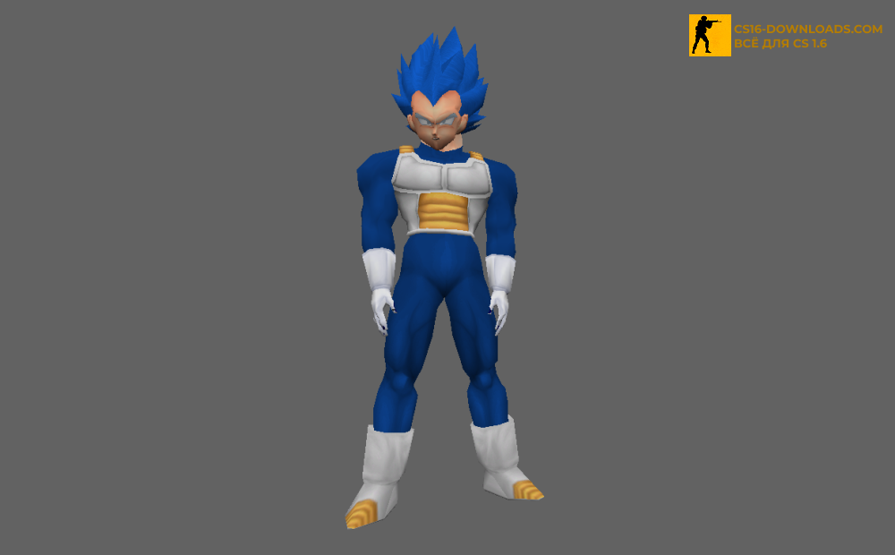 Модель «Vegeta» — мужской скин для CS 1.6 с выразительным дизайном и детализированными текстурами, которые делают персонажа заметным на любых картах. Экипировка тщательно проработана, что создаёт впечатление уверенного и стильного бойца. Установка проста: достаточно заменить стандартные файлы на файлы из архива, и модель готова к игре. «Vegeta» отлично подойдёт тем, кто хочет добавить динамики и индивидуальности своему персонажу без лишних усложнений.