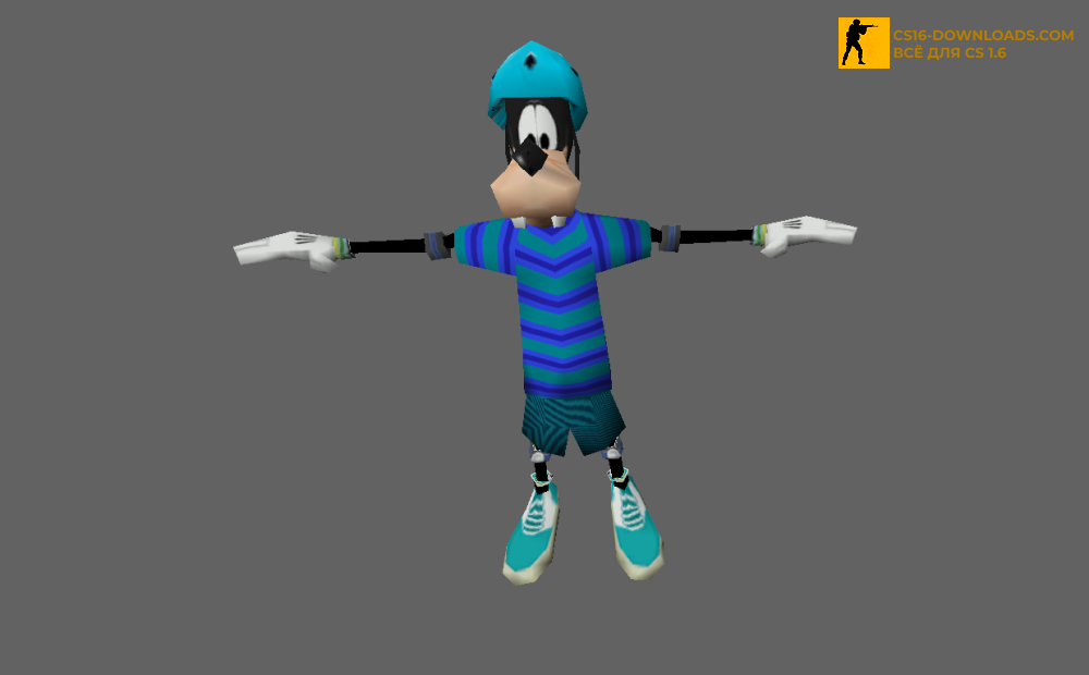 Модель «Goofy» (ct,tt+united) — это мужской скин с весёлым и запоминающимся образом: нестандартный дизайн, вызывающий улыбку, позволяет выделиться в рядах стандартных персонажей. Текстуры выполнены качественно, а образ выглядит приятно даже на дальнем расстоянии. Объединённая версия включает оба варианта — для CT и TT, что облегчает установку и экономит время. «Goofy» станет удачным выбором для тех, кто ценит юмор, лёгкость и нестандартный стиль в CS 1.6.
